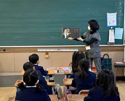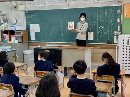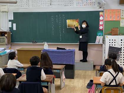 今朝は恒例の『がらがらどん』さんの読み聞かせで始まりました。