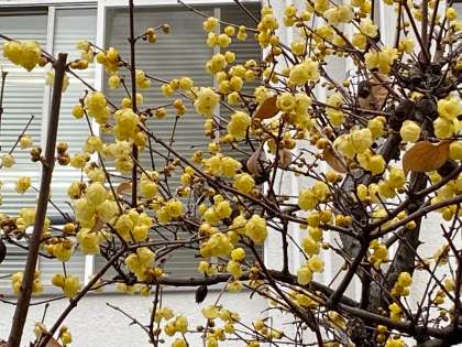梅が元気です!蝋梅(ろうばい)も見事に咲いています。淡い黄色にしばし心をうばわれます。