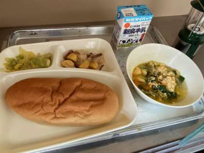 中華おこわ、卵スープ&キャベツのオイスターいため