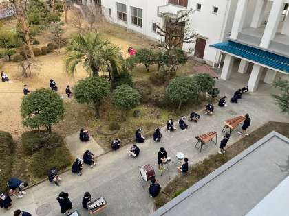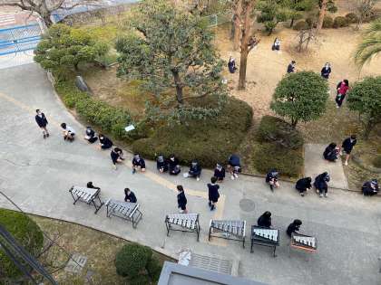『6年生をおくる会』で合奏予定の曲を、豊新の森にて演奏してくれました。