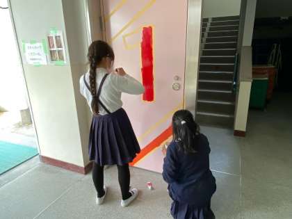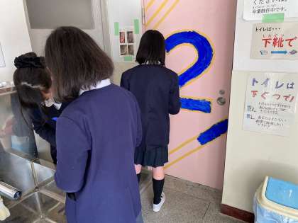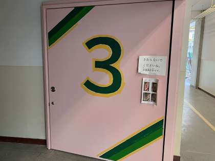 本校の階段には1号階段から4号階段まであります。どこが1号階段なのかわかるように防火扉に数字を入れようということになりました。