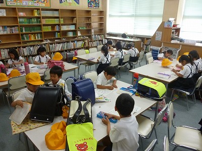 1年生は指導員の先生に説明を聞いて、まずは宿題に取り組みました。