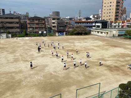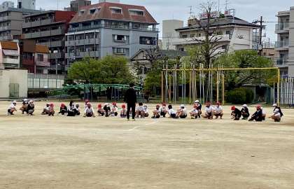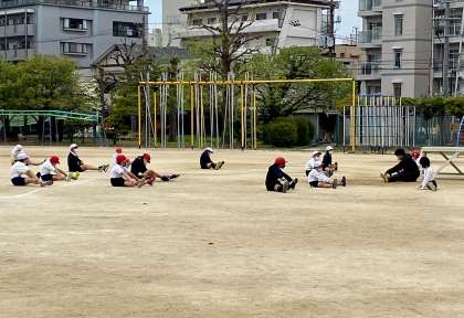 まずはしっかり準備運動します!身体の柔らかいお友だちがいます!柔軟性はケガを防ぐためにも、とっさの動きのためにも大切なことですね!