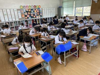 どのお友だちもしっかりと大きなひらがなで、短冊のわくいっぱいに書くことができました。