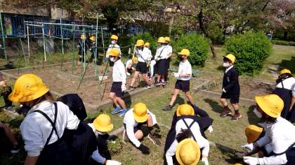 5時間目に学習園の草抜きをしました。ゴミ袋も5個以上たまるほどたくさん抜くことができました。他の学年の草抜きのお手伝いもしました。学習園でどんな植物を育てるか楽しみですね。