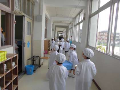 今日から、1年生も自分たちの力で給食準備を頑張ります。大丈夫かな…と、少し心配でしたが、運ぶのもスムーズで配膳も静かに上手に出来ていました。先生のお話もよく聞けていて、ほんとうに感心しました!