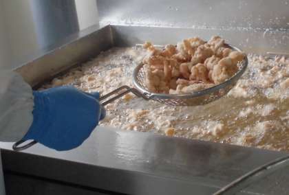 鶏肉のからあげも大人気メニューです。給食当番さんからは「やったー!からあげや!」「からあげ好き!」と声があがっていました。(授業中もいい匂いが教室に届いていたそうです。)