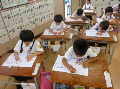 子どもたたちは正しいひらがなの書き方を練習すると同時に「ことば」の勉強も併せて行っています。