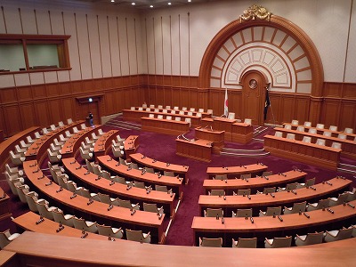 市役所では、市会の本会議場に入ることができ、係りの人から、たくさんの話を聞きました。