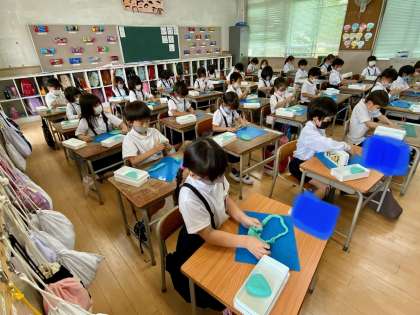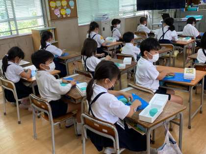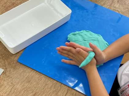 なるほど、それで粘土をどんどんとたたいてお好み焼き焼きのように丸くのばしていたんですね!