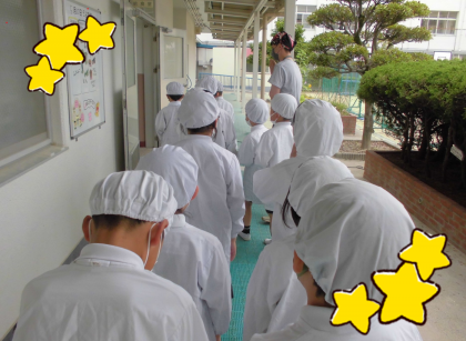 服装もばっちり!給食室に元気な声がひびいていました!