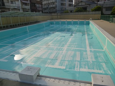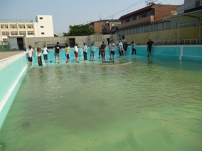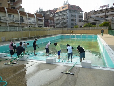 今日の放課後、来週からのプール学習に向けて、先生方と管理作業員さんとでプールの清掃をしました。