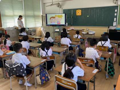8:30からは子ども達は各学級で写真のように朝の会を行い、いよいよ学校生活の本格的なスタートとなります。