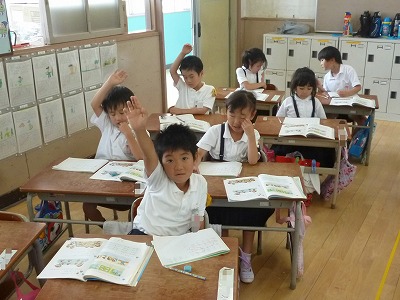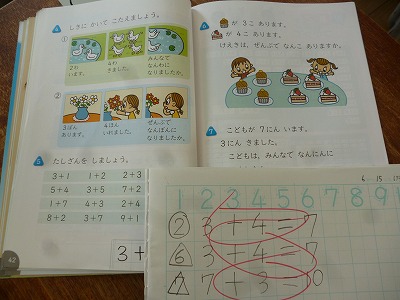 問題が解けると、手を挙げて先生にチェックしてもらい ○ をもらいます。