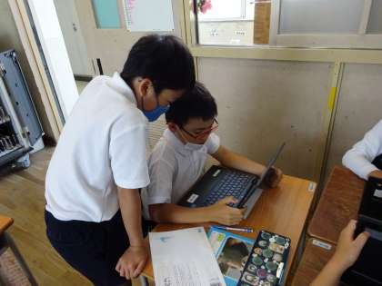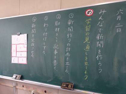 「みんなで新聞を作ろう」の学習が始まりました。まず教科書から新聞の工夫を見つけ、それをまとめました。その後6人の班になり、どんなテーマの新聞を作るか話し合いました。キャラクター新聞やおかし新聞、クラス新聞など様々なテーマが出ており、完成が楽しみです☆テーマが決まった班はクロームブックで検索したり、アンケート用紙を作成したりしていました。