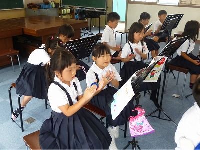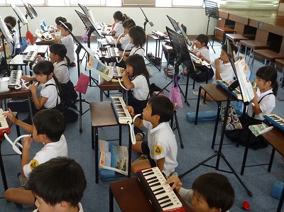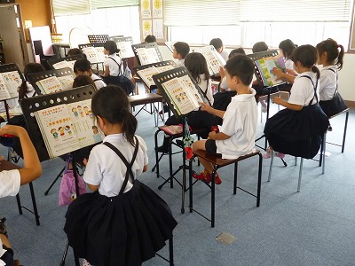 1年生のこのクラスでは、第1音楽室が開いていたので、音楽の授業を行っていました。