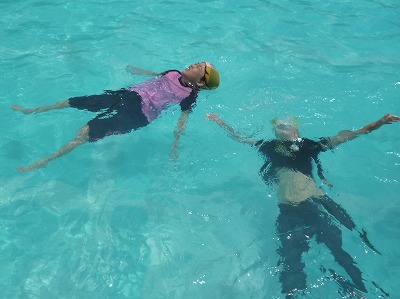 また、どうすれば、身近なもので浮いたり、泳いだりできるかも体験できました。