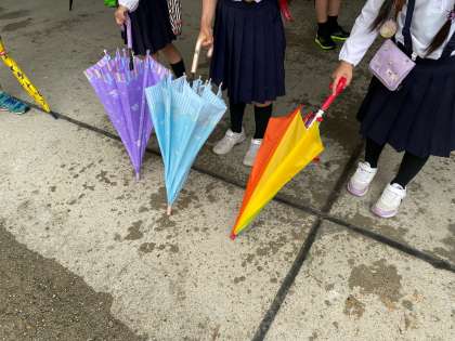 この時期は登下校時、雨が降ります。しかし、このような心遣いのできる子ども達の様子を観ていると、