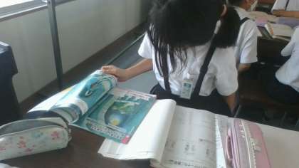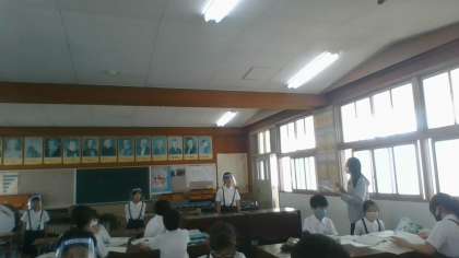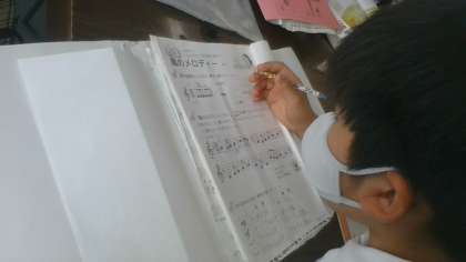 「歌のにじ」の歌唱テストを行いました。普段話す声とは違う「歌声」を音楽室に響きわたらせていました。緊張しながらも姿勢や表情、音程を意識して歌うことができていました。テストの順番を待っている間は「風のメロディー」という曲を2拍子ごとに丸で囲んだり、音楽記号を教科書を見ながら書いたりしました。