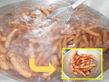 給食室では、ウインナーの皮が破れないように火加減を調整して、中心温度が上がるまで慎重にゆでてくださっています。とてもきれいに、おいしくできあがっていました。
