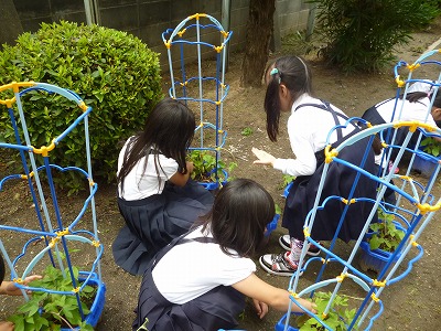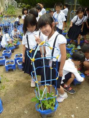 子どもたちは自分のアサガオの成長を自慢げに話してくれました。