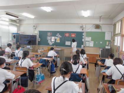 大阪市教育委員会から歯科衛生士の先生にきていただき、むし歯と歯周病についての学習をしました。