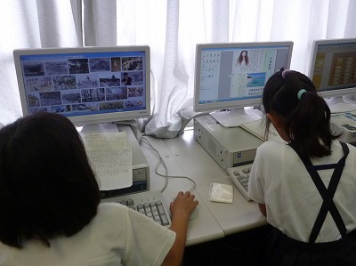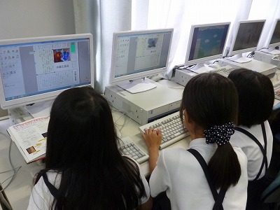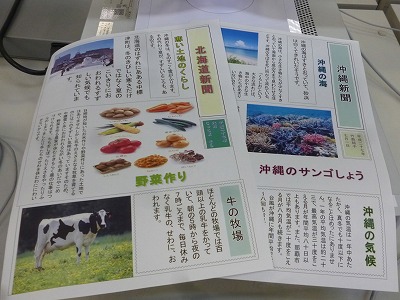 5年生が以前から取り組んでいた「沖縄」・「北海道」についての新聞ですが、このクラスでは、多くの子が出来上がったようで、プリンタで印刷をしていました。