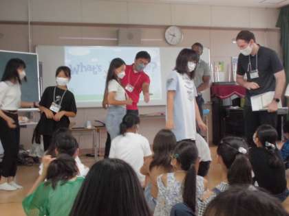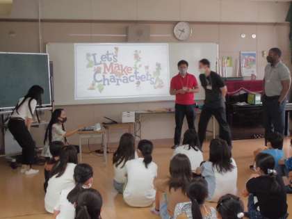 本日、イングリッシュデイを開催しました。イングリッシュデイとは、C-NET(外国の先生)と交流し、ゲームや対話型活動を通して世界の国々の文化について学び、積極的に英語でコミュニケーションをとりながら楽しむイベントです。今日は、オリジナルのキャラクター作りやダンス、グリーンライト・レッドライト(外国版だるまさんが転んだ)等体を動かしながら、英語に親しみました。