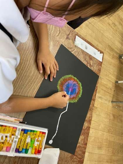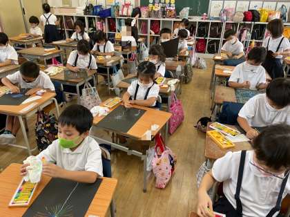 その時に見た花火をイメージしたり自分らしくアレンジして描いていました。