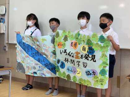 2組は「メリハリ・友情・自然・勇気・チャレンジ・協力 〜いろんな宝を発見 林間学習〜」