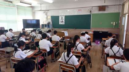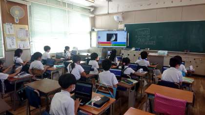 2〜4時間目に習字・保健・理科の授業を3分割に分かれて学習しました。習字は「土地」を書きました。練習を重ねるごとに上手な字を書くことができました。保健では、成長していく体について学習しました。思春期になり体の特徴が出てくることがわかりました。理科では、テストをする前にカフートというアプリを使ってクイズ大会をしました。月や星の動きの単元に出てきた内容を振り返りながら楽しくできました。