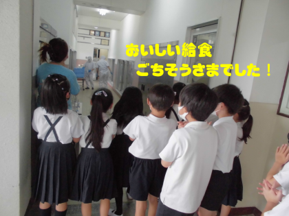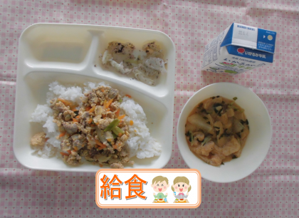 大人気の他人丼に、とうがんのみそ汁、キャベツの赤じそあえ、「おいしかったです!ごちそうさまでした!」と、元気なあいさつが給食室に響いていました!