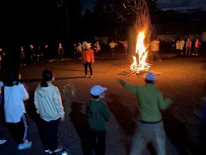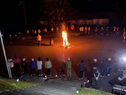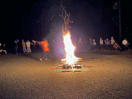 火の神『ひっちゃん』からいただいた火を囲み、キャンプファイヤーが始まりました。
