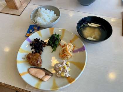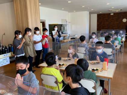 笑顔で朝の集いを終えて、しっかり腹ごしらえです!