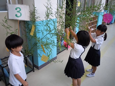 ※写真はありませんが、4年生も各クラスで短冊に願い事を書いていました。