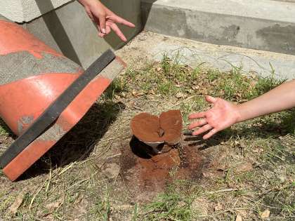 管理作業員さんに教えてもらってカラーコーンをとると・・・。