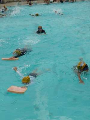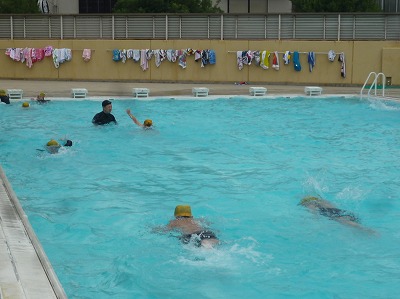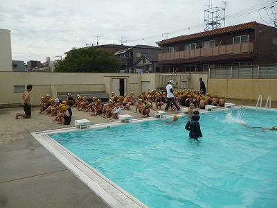 ビート板を使っての練習、フォームを確認しながらの練習、息継ぎをうまくして50mを泳ぐ練習と、それぞれのグループで、何本も25mを泳ぎました。