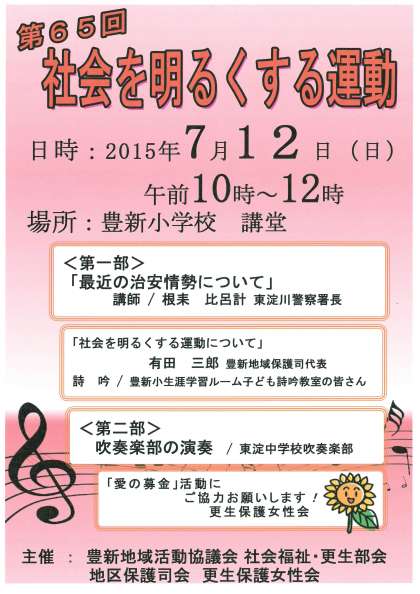 東淀川区豊新地域の「社会を明るくする運動」がポスターの要領で開催されます。