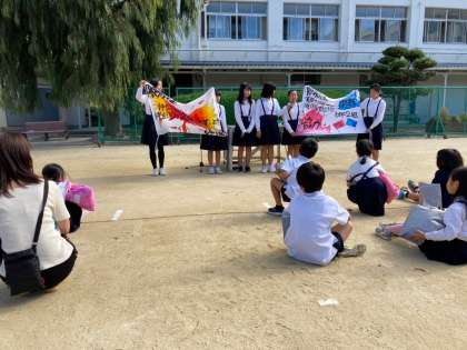 児童朝会にて、6年生がこの週末修学旅行へ行くことの報告をしました。