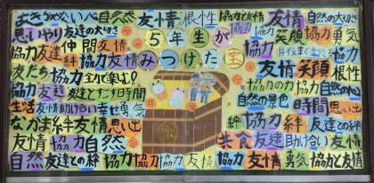 5年生が林間学習で見つけた宝!(5年・玄関掲示)