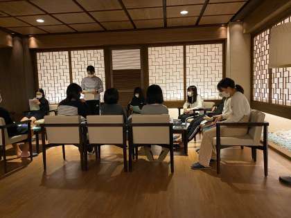 今日の活動を振り返って、明日の活動にどう活かすかを話し合います。