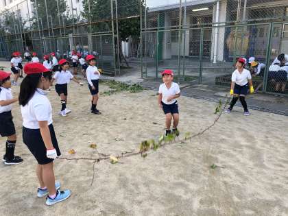 さつまいもを掘り出すだけでなく、長いつるを使ってなわとびをしたり、観察したりをしました!さつまいもだけでなく、幼虫も見つけました!