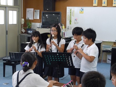 今日が最終日、1学期のリコーダー学習の成果発表でした。グループごとで決めた曲の演奏です。