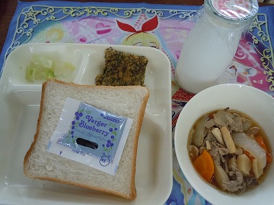「ヒラヤ—チー」とは、韓国・朝鮮料理の「チヂミ」によく似た沖縄の家庭料理だそうです。もずくもたっぷり入っていて、もっちりした食感で、子どもたちも喜んでいました。