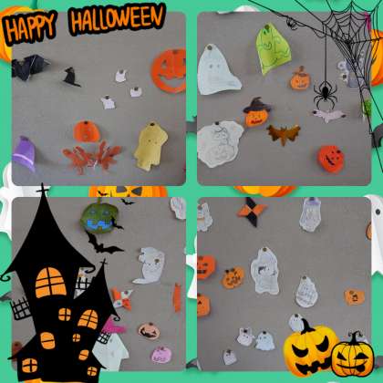 ハロウィンパーティーも近づいたこともあり、教室掲示もハロウィン仕様になっています。ハロウィンパーティーがとても楽しみですね。