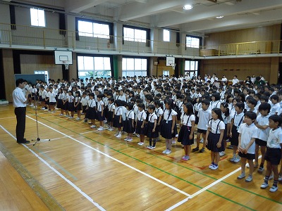 そして、1学期を振り返り、学習や多くの行事等でみんながよくがんばってくれて、4月よりとても成長したことをほめました。