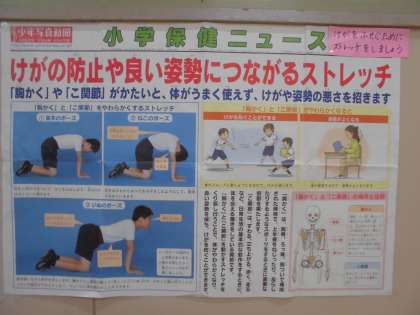 運動の前には、準備運動やストレッチをして、体をやわらかくしましょう。けががへりますよ。