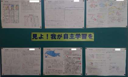 学年掲示を新しくしました。今回は自主学習をいろいろなテーマでがんばりました。ぜひ見てください。
