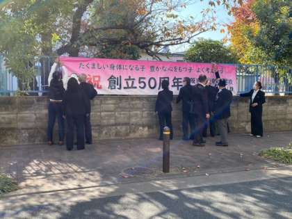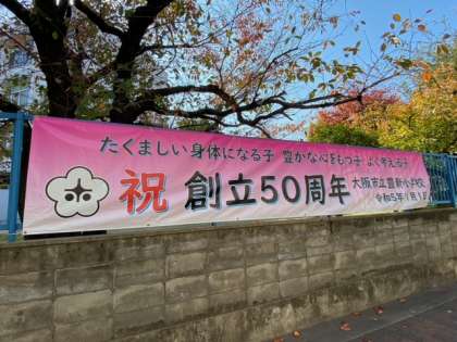 その後、創立50周年記念事業委員会を開催して横断幕のお披露目を行いました。
