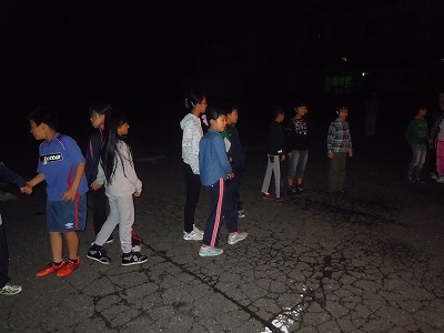 キャンプファイヤーの締めくくりは、みんなで「今日の日はさようなら」を歌って、宿舎に戻りました。
